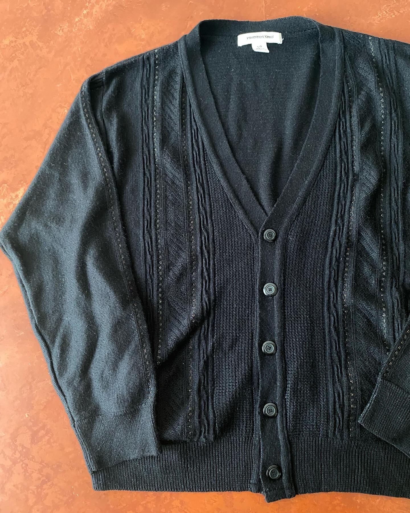 1980s 3D knit "black" wool cardigan